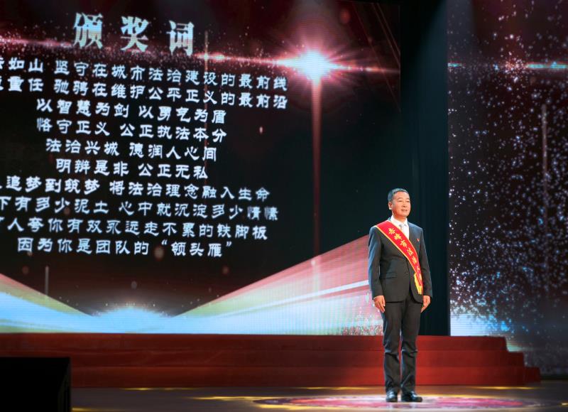 “執(zhí)法如山、堅守在城市法治建設(shè)的最前沿,肩負(fù)重任、馳騁在維護(hù)公平正義的最前沿,以智慧為劍、以勇氣為盾,恪守正義、公正執(zhí)法本分……”典禮頒獎環(huán)節(jié)給予孫廣通高度評價。孫廣通表示,將認(rèn)真貫徹落實黨的二十大精神,始終堅持以習(xí)近平法治思想為指導(dǎo),堅定不移走中國特色社會主義法治道路,以榮譽為起點,堅定法治信仰,立足崗位服務(wù)中心大局,以實際行動和更優(yōu)異的成績,為法治赤峰建設(shè)貢獻(xiàn)更大力量。