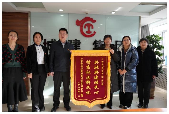 “思民生,解民難,做實(shí)事,暖民心,感謝城建集團(tuán)為我們小橋社區(qū)解決了多年以來的老舊小區(qū)老大難問題?!?024年2月1日上午,城建集團(tuán)黨委副書記、副董事長潘志偉接到了赤峰市松山區(qū)振興街道黨工委書記、人大工委主任宋占英代表社區(qū)居民送來的一面大紅錦旗,題為“共駐共建暖民心,情系社區(qū)解民憂”,短短的14個(gè)字,卻代表著對(duì)城建集團(tuán)作為大國企勇于承擔(dān)社會(huì)責(zé)任的充分肯定,同時(shí)也表達(dá)了對(duì)城建集團(tuán)助力幫扶的感謝之情。