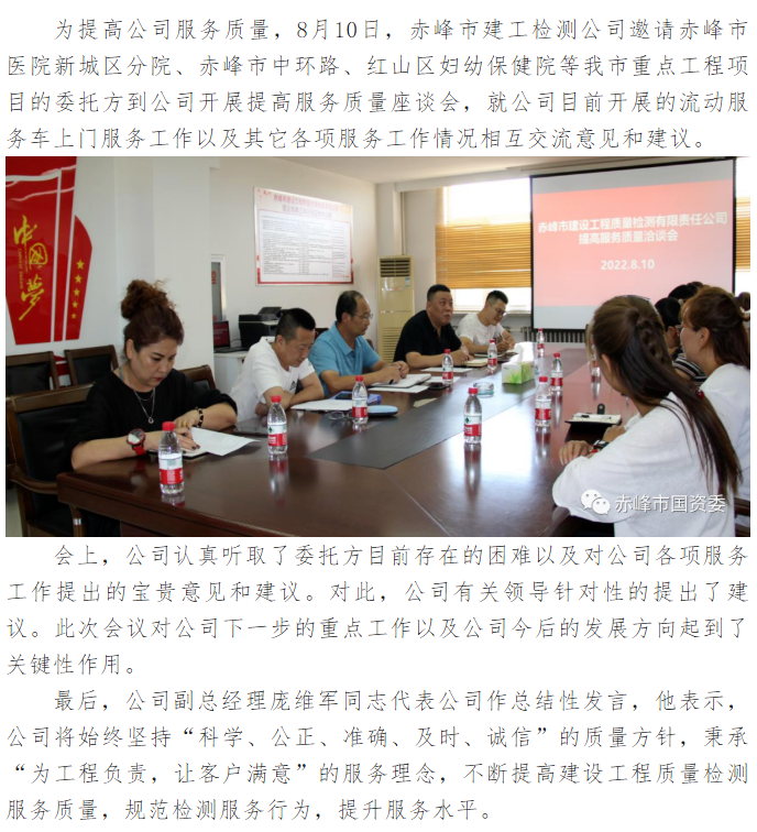 赤峰市建設(shè)工程質(zhì)量檢測有限責任公司與委托方召開提高服務(wù)質(zhì)量座談會